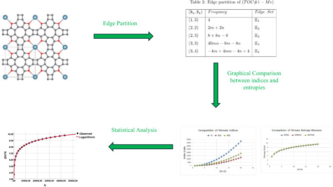 Degree-based Nirmala indices were used to study the molecular topology versus information theoretic complexity of two single-layer polymeric tetraoxa circulene derivatives. Applying the graph-theoretical edge partitioning we obtained general formulas for original and inverted Nirmala indices, which measure, respectively, molecular connectivity and structural deviation. Graph based entropy measures were used to quantify complexity and statistically correlated with derived indices by means of a logarithmic regression. The reliable relationship between entropy and index was established with excellent R-squared values and low SE of the models. The results show that not only Nirmala descriptors act as quantitative structure property relationship, but also they are predictors of the molecular entropy. These results indicate that the Nirmala based descriptors are promising in serving as an indicator for structural characterization, molecular design, and quantitative modeling in materials chemistry and nanostructure study.
