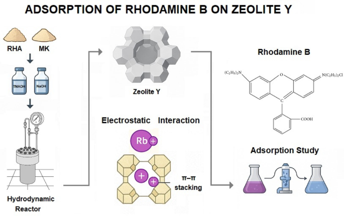 Sustainable fabrication of zeolite Y from rice husk ash and metakaolin for the adsorption of Rhodamine B dye