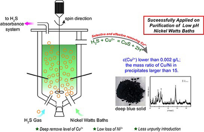 Highly efficient and selective removal of copper from low pH nickel Watts solution through hydrogen sulfide