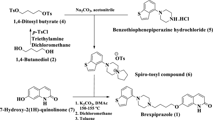 Keywords: Brexpiprazole; 7-Hydroxycarbostyril; Benzothiophenepiperazine hydrochloride; Spiro-tosyl salt; Active pharmaceutical ingredient
