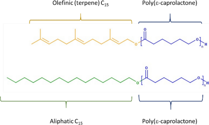 Terpenes versus linear alkyl substituents: effect of the terminal groups on the oligomers derived from poly(ε-caprolactone)