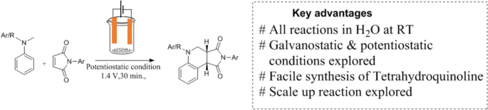 Keywords: Electro-organic synthesis; N,N-Dimethylaniline; N-Arylmaleimide; t-Butyl hydroperoxide; Povarov-type reaction; Heterocycles