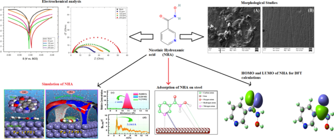 Examining the outstanding corrosion inhibition performance of nicotinic hydroxamic acid in acid pickling: a comprehensive study